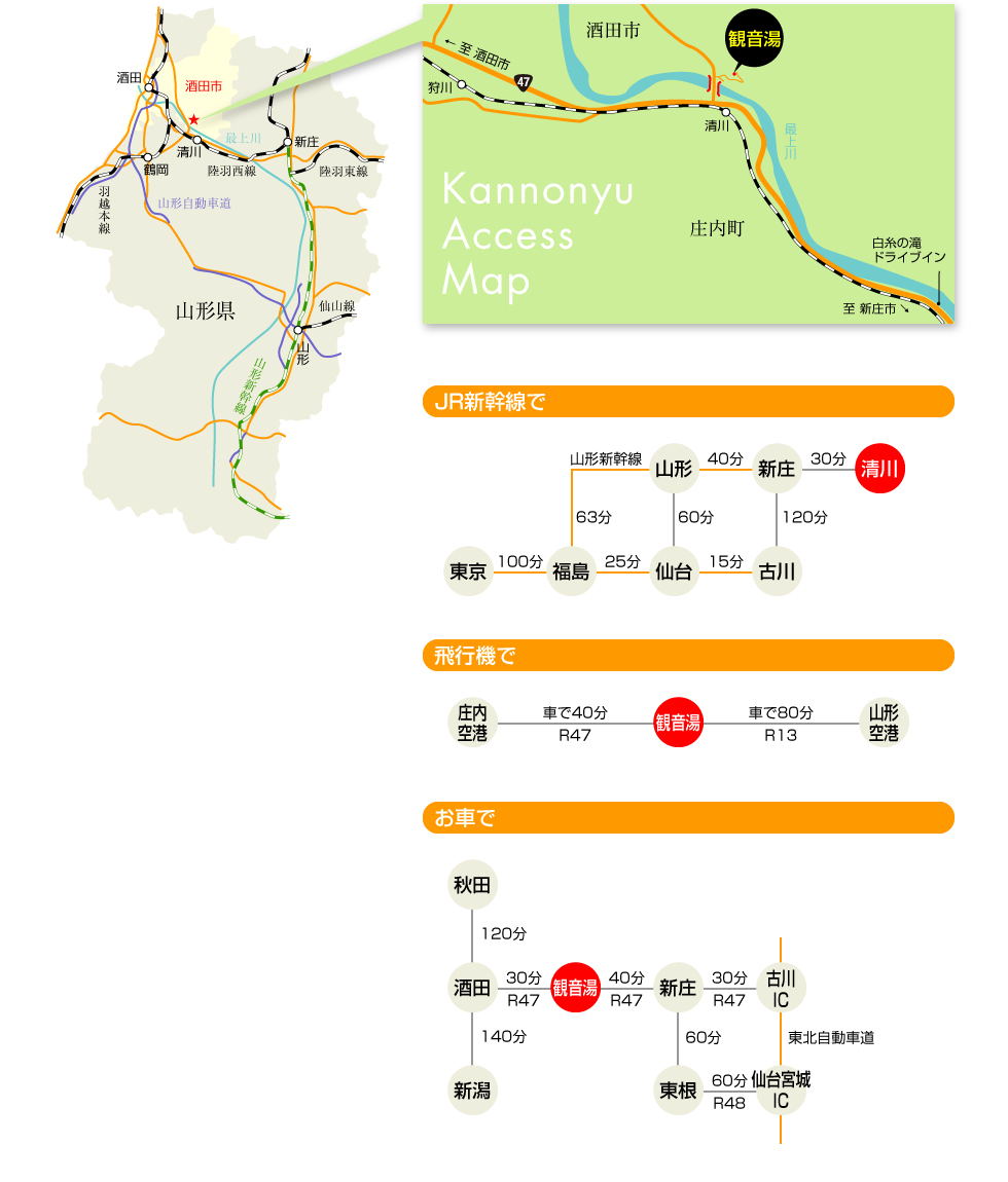 松山温泉 眺望の宿・観音湯 〒990-6812 山形県酒田市成興野須郷1-8 電話:0234-62-2516 ファックス:0234-62-2519